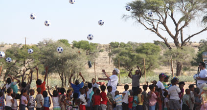 We traveled south along the Nossob River to exit the Park at Twee Rivieren. Our destination was Andriesvale for an afternoon of community work. This was a very poor and dysfunctional community, seen at its worst on a Saturday in the middle of the weekend’s drinking binge. There were obvious signs of alcohol and physical abuse. Unfortunately some of these marginalised communities see us as part of the “authority” which neglects them and treat us accordingly. Our shoulders must be broad in such cases. We can do so little in the face of such huge needs.